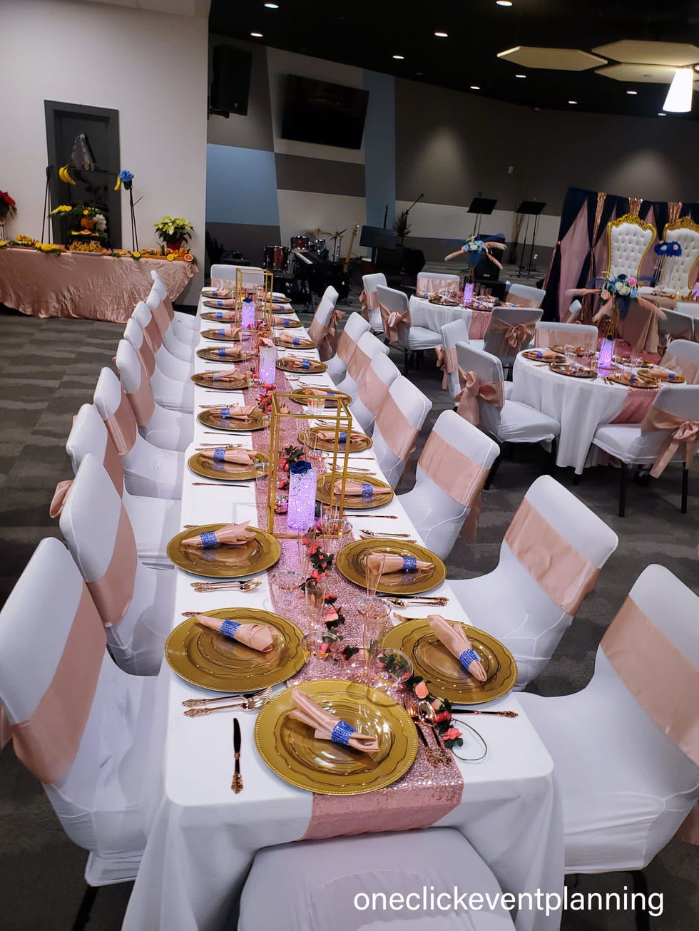 This project showcases elegant event setups with various color schemes and decorative elements. From pink and gold accents to green and gold decorations, this project captures the beauty and sophistication of event planning.